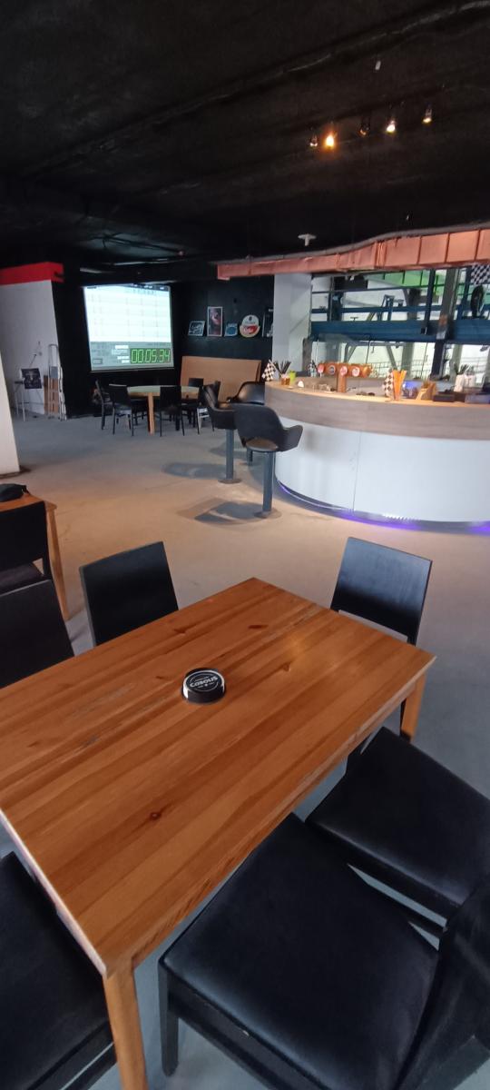 Celá restaurace je ve výšce cca pěti metrů nad depem a díky prosklené stěně je z ní perfektní výhled na dění na celém závodišti.
